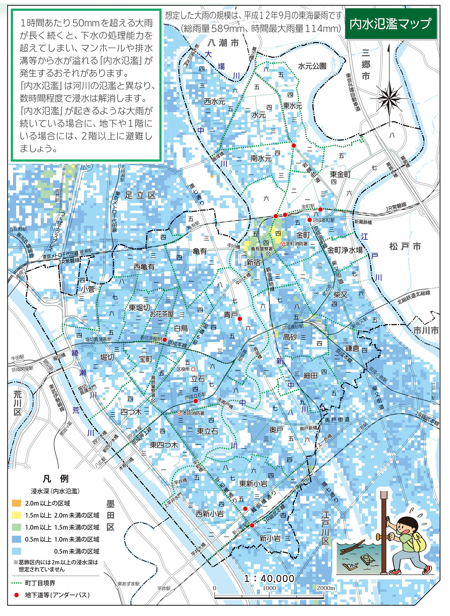 江户川 洪水灾害预测图